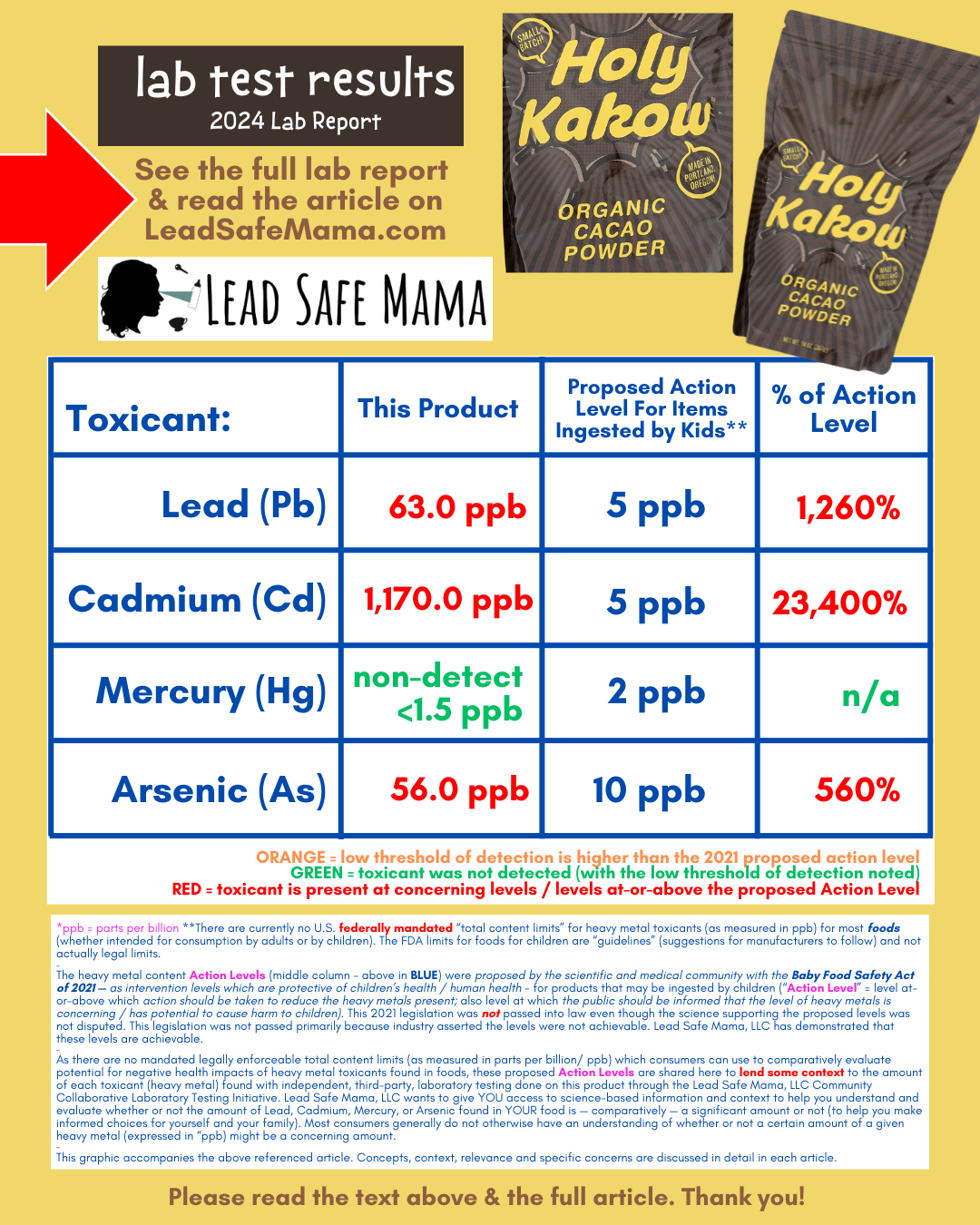 Holy Kakow Organic Cacao Powder tests positive for very high level of Cadmium (Lead & Arsenic, too) — 2024 Lab Report