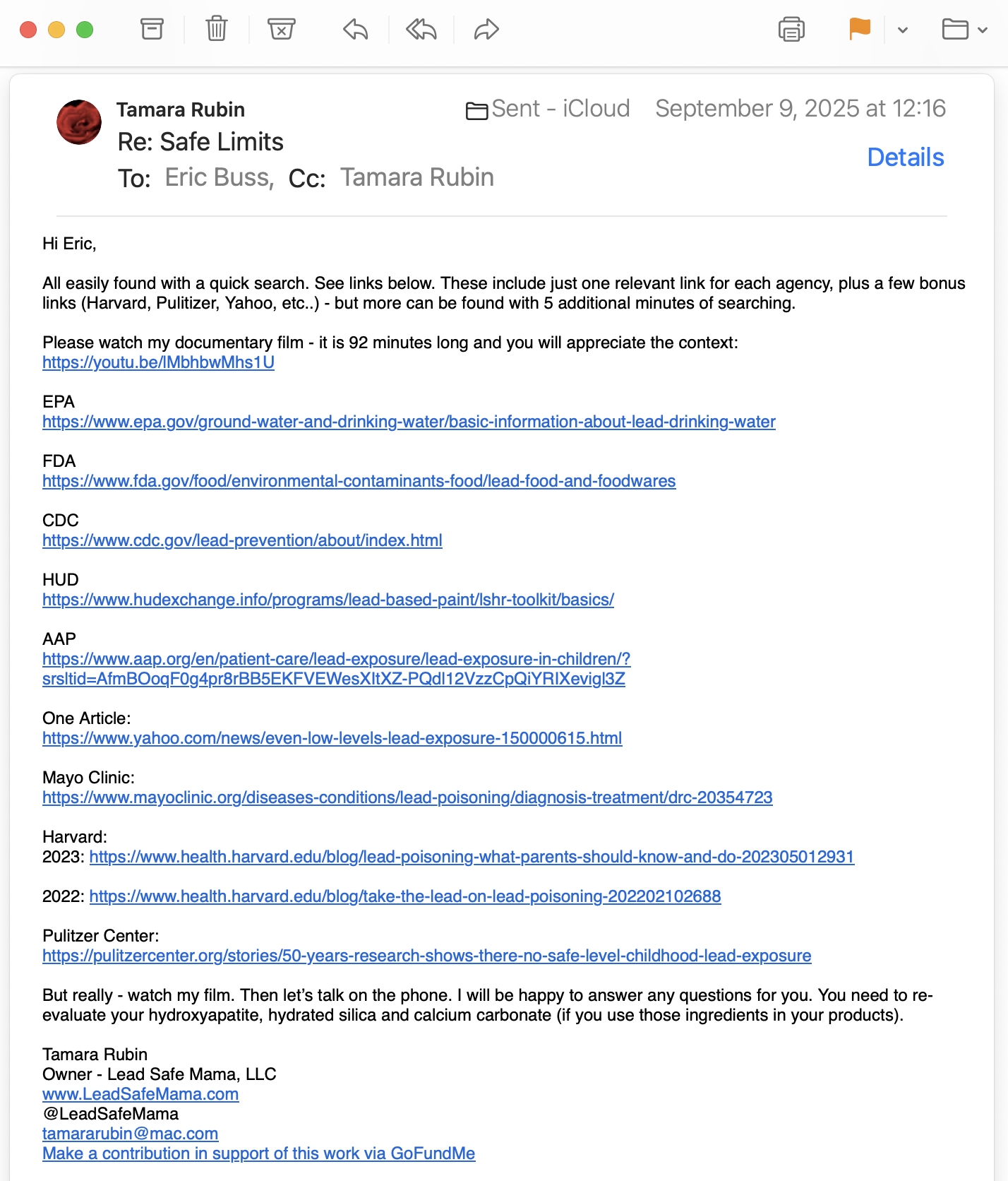 September 2025 Email Exchange with Founder & CEO of Davids Toothpaste