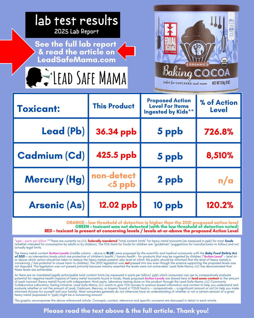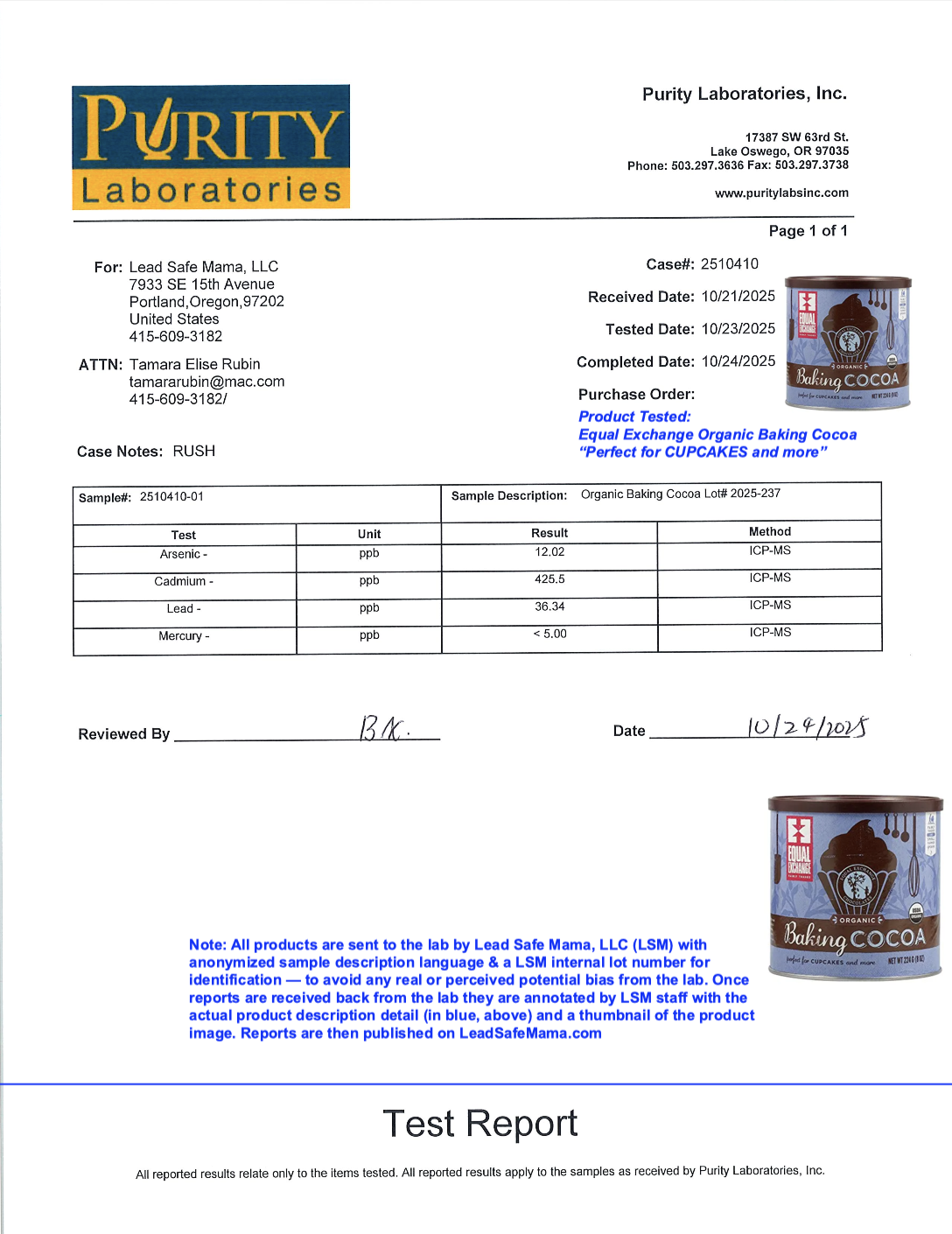 Testing Equal Exchange Organic Baking Cocoa for Lead, Cadmium, Mercury, & Arsenic with Independent, Third-Party, Laboratory Testing