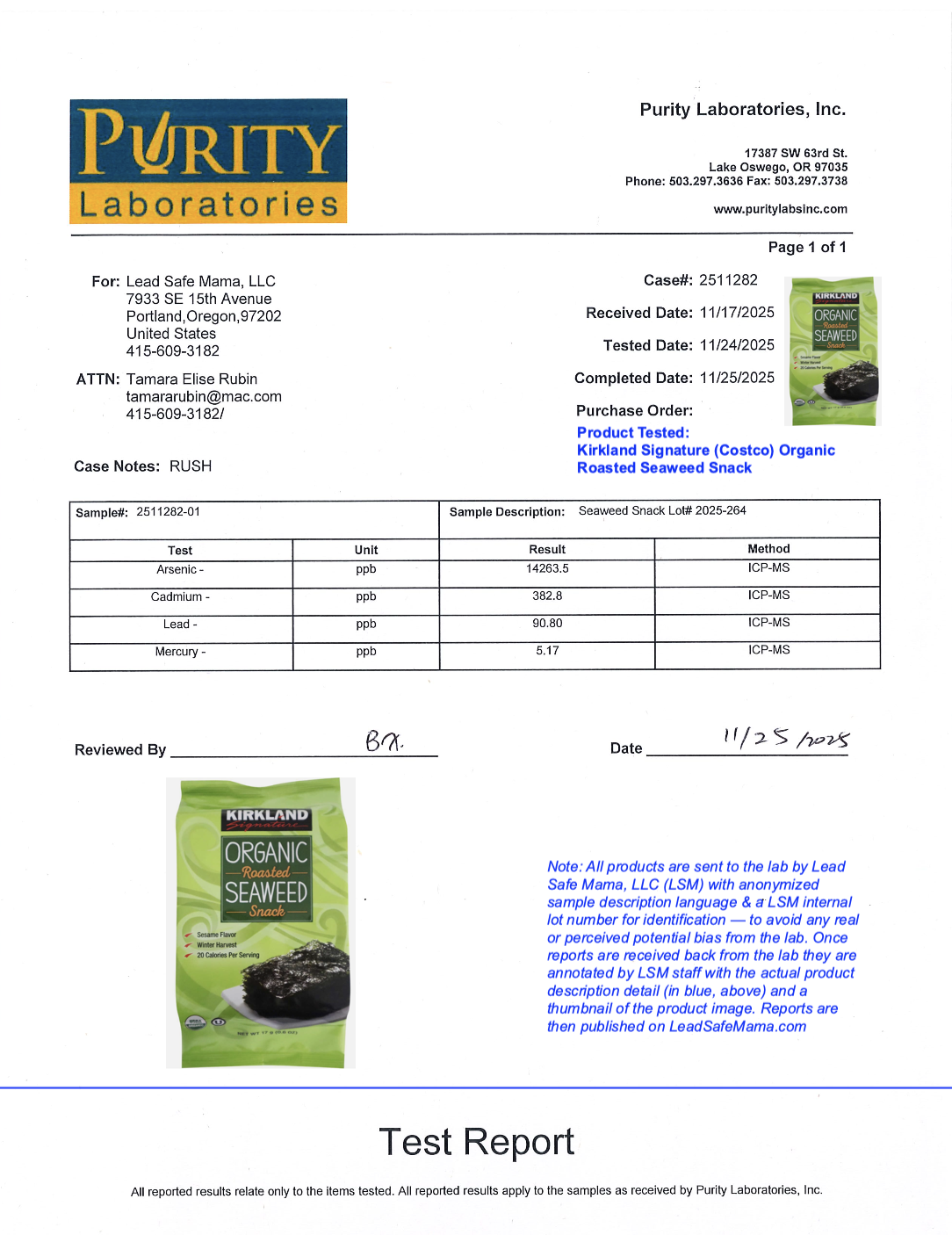 Testing Kirkland Signature Organic Roasted Seaweed Snack for Lead, Cadmium, Mercury, & Arsenic With Independent, Third-Party, Laboratory Testing