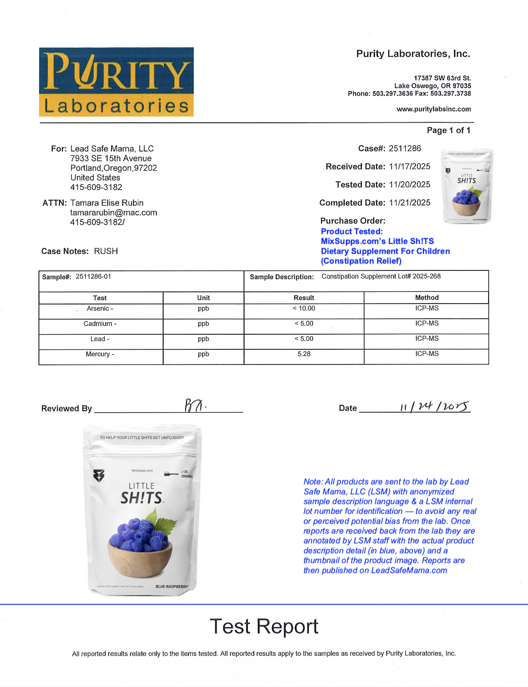 Testing Little SH!TS Supplement Powder for Lead, Cadmium, Mercury, & Arsenic With Independent, Third-Party, Laboratory Testing