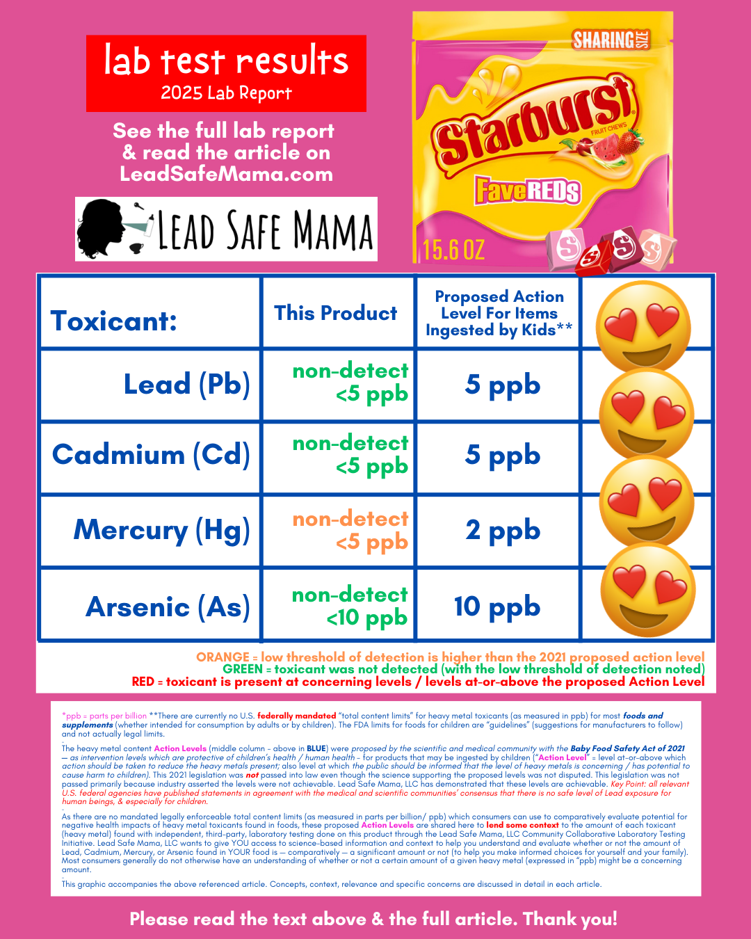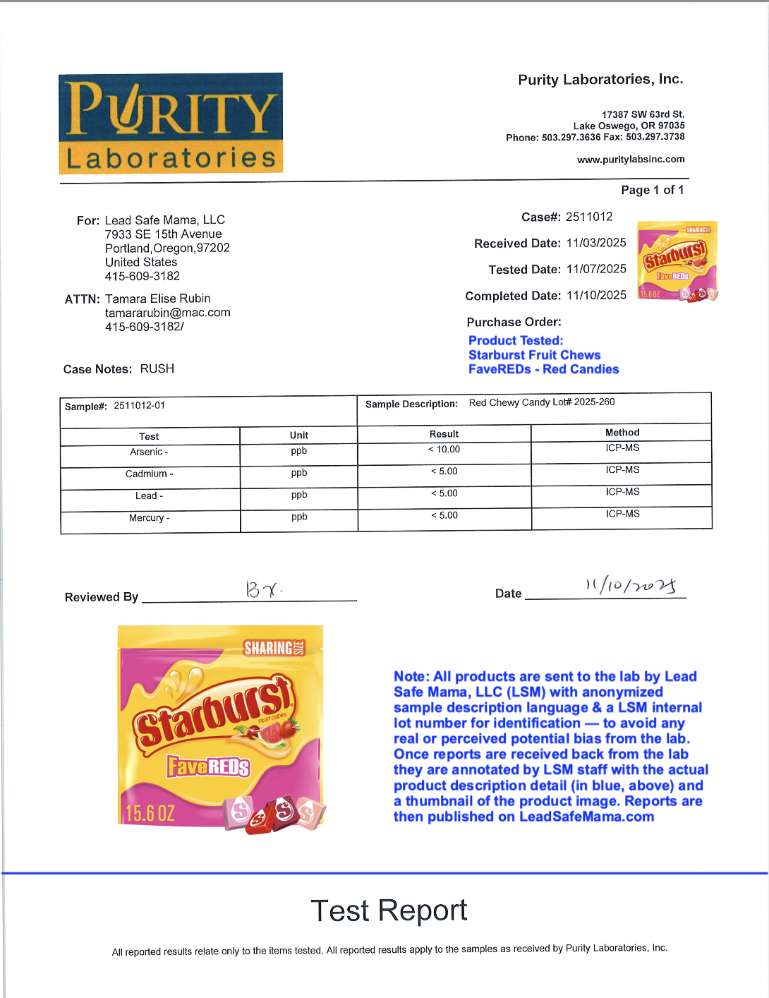 Testing Starburst Fruit Chews FavREDs for Lead, Cadmium, Mercury, & Arsenic with Independent, Third-Party, Laboratory Testing
