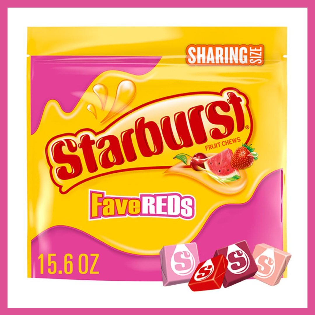 - NEW! — Candy — 5 — [Tested: Nov 2025] Starburst Fruit Chews FavREDs – Pinks & Reds (USA Product): https://amzn.to/3WRV9DZ