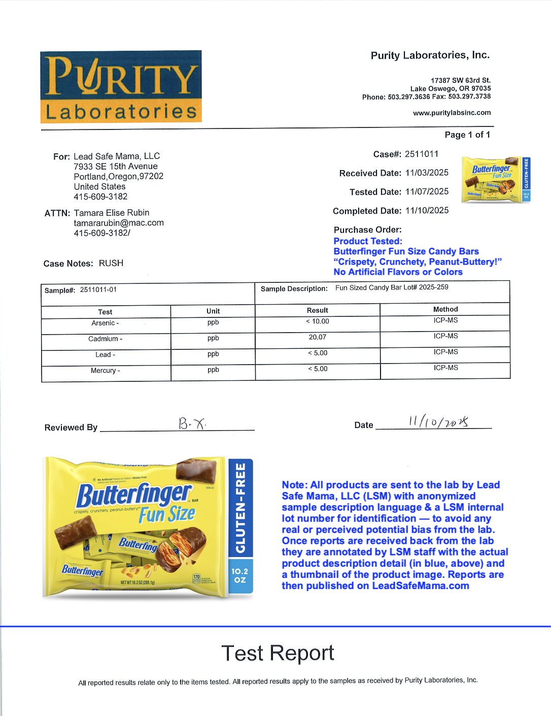 Independent, Third-Party Laboratory Testing of Butterfinger Fun Size Candy Bars — Testing for Lead, Cadmium, Mercury, & Arsenic.