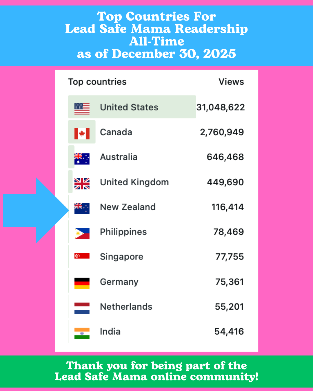 Our friends in New Zealand shipped us an assortment of products to send in for independent, third-party laboratory testing — products that might be interesting to NZ parents also looking to protect their children from exposure to toxicants. This Cerebos Iodised Table Salt is one of those products. As you can see from the image below with our “all time” readership numbers here on LeadSafeMama.com, New Zealand is one of the top countries where we have readers following our work — and we love helping to make sure our New Zealand friends have information relevant to the choices they are making for their families.