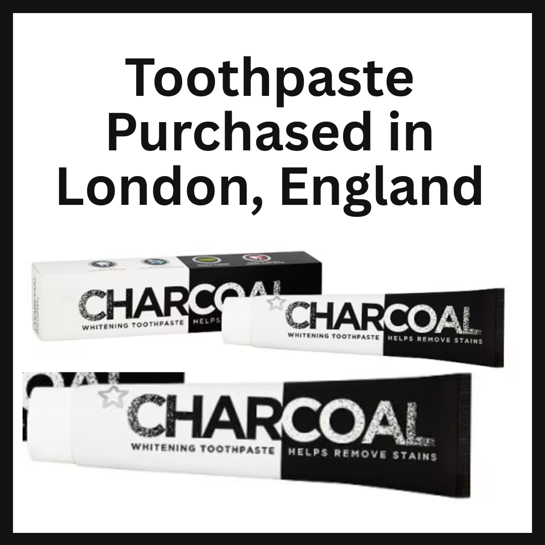 This Charcoal Whitening black toothpaste pictured above was purchased in London, England and brought back to the United States (by me) for independent, third-party laboratory testing this year (in 2025). The full original lab report for this product can be found at the very bottom of this article, please scroll down. To see more English products we have tested and reported on, click here.