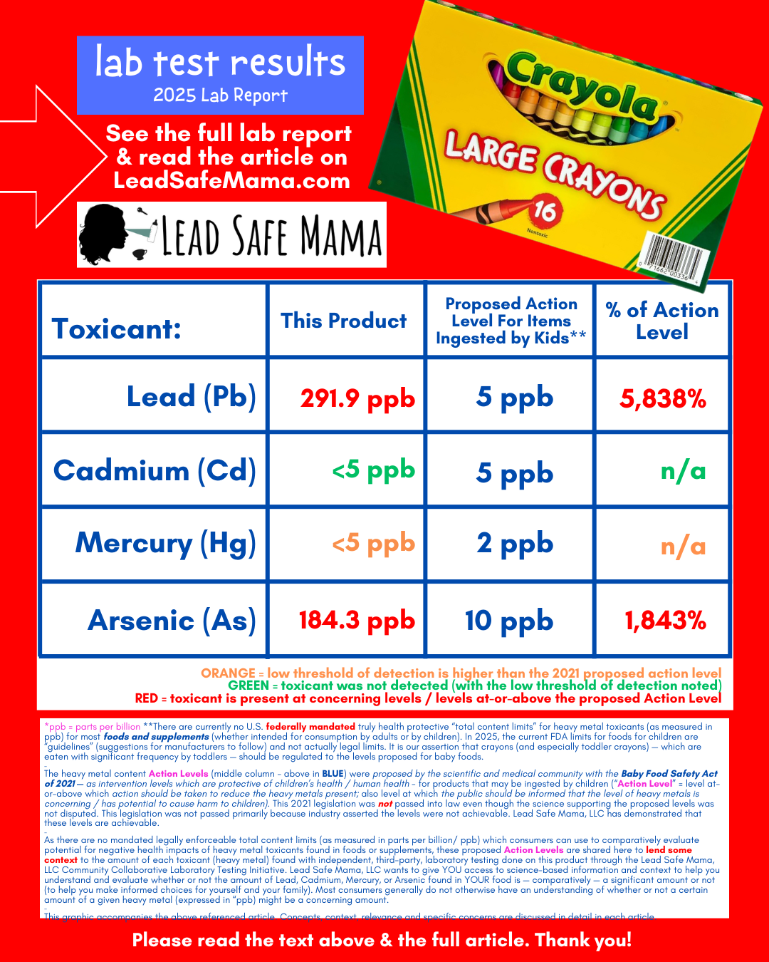 Does your child eat crayons? We tested a Crayola Large Crayon (the Red Crayon) for Lead, Cadmium, Mercury, & Arsenic with Independent, Third-Party Laboratory Testing