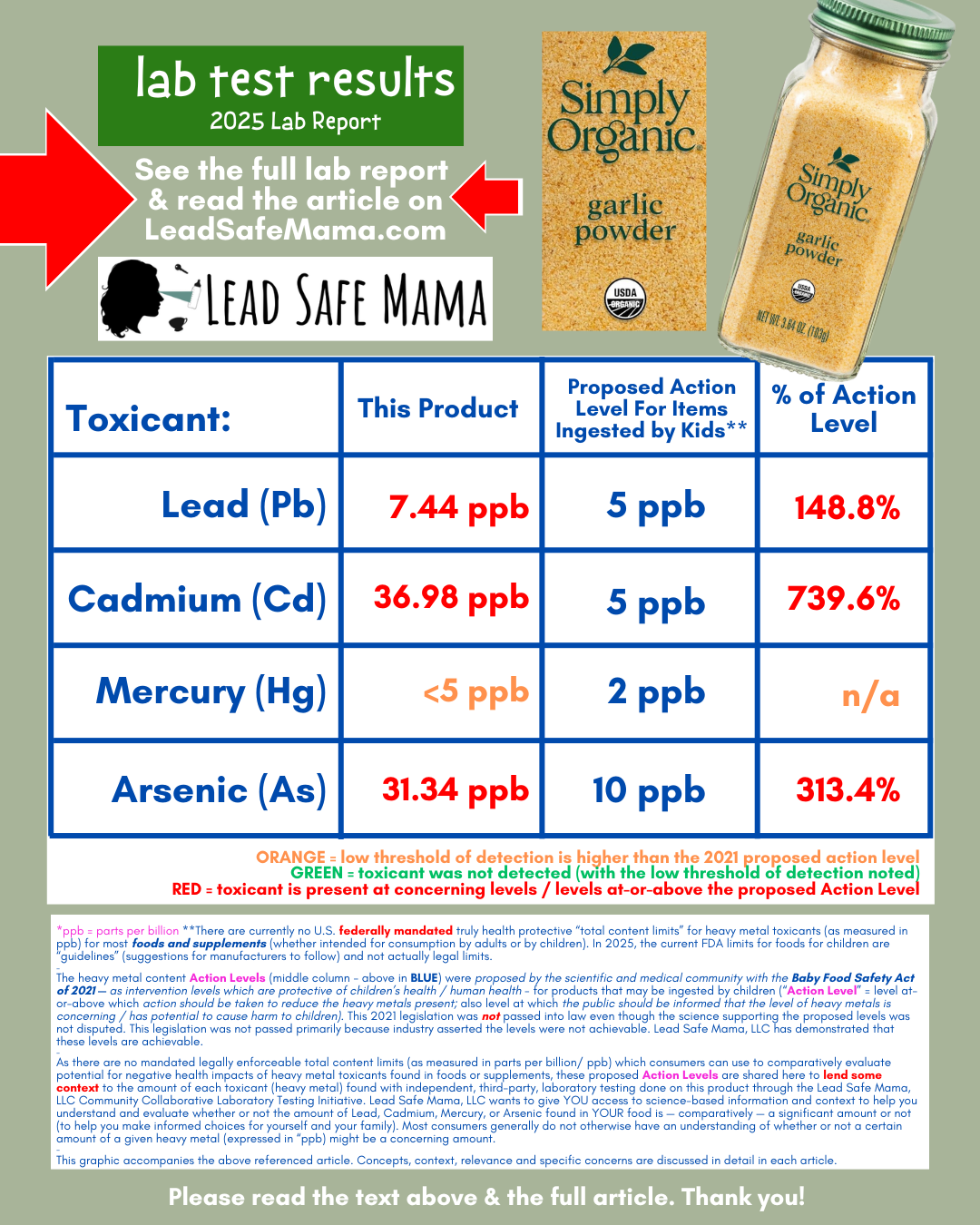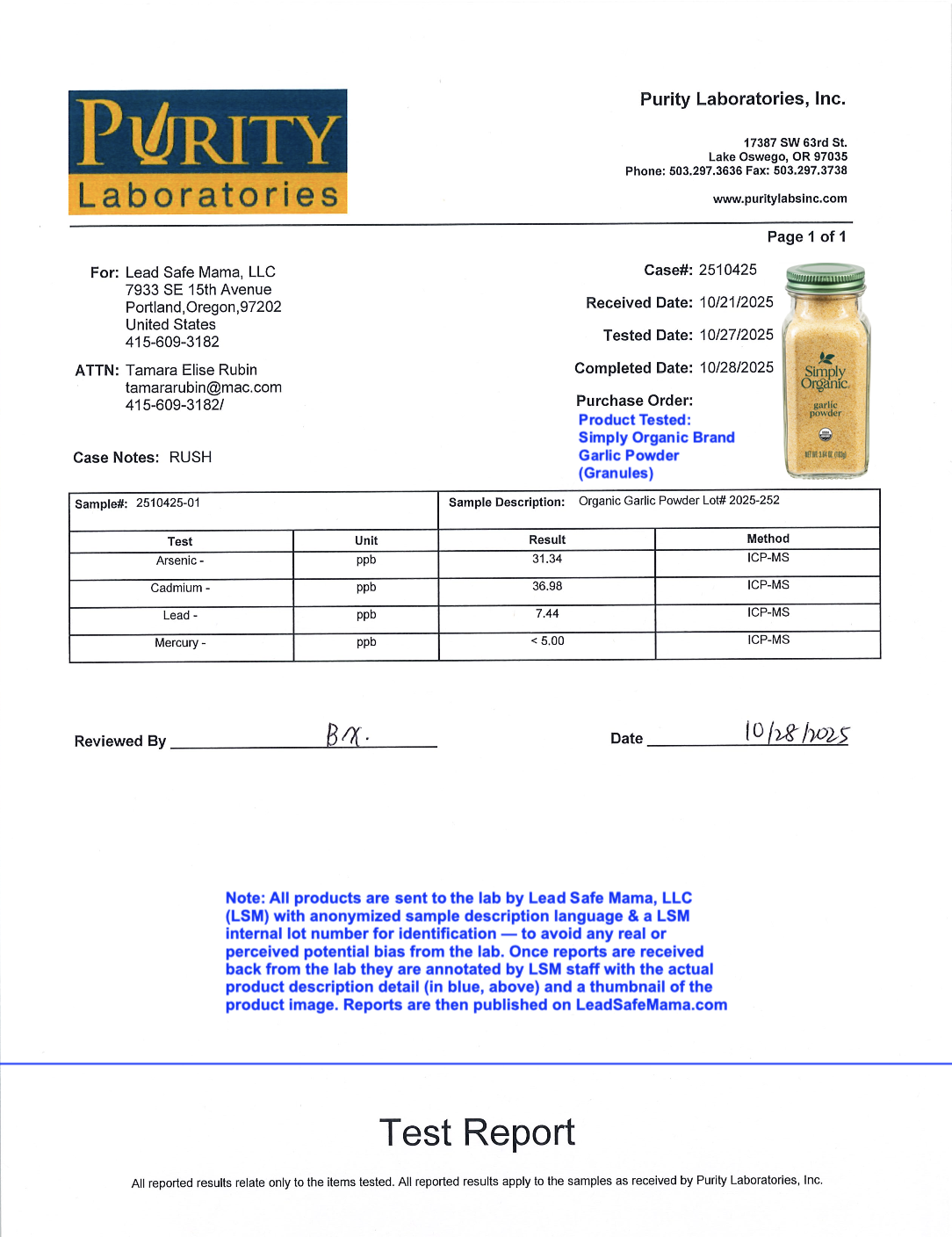 Testing Simply Organic Garlic Powder for Lead, Cadmium, Mercury, & Arsenic with Independent, Third-Party Laboratory Testing