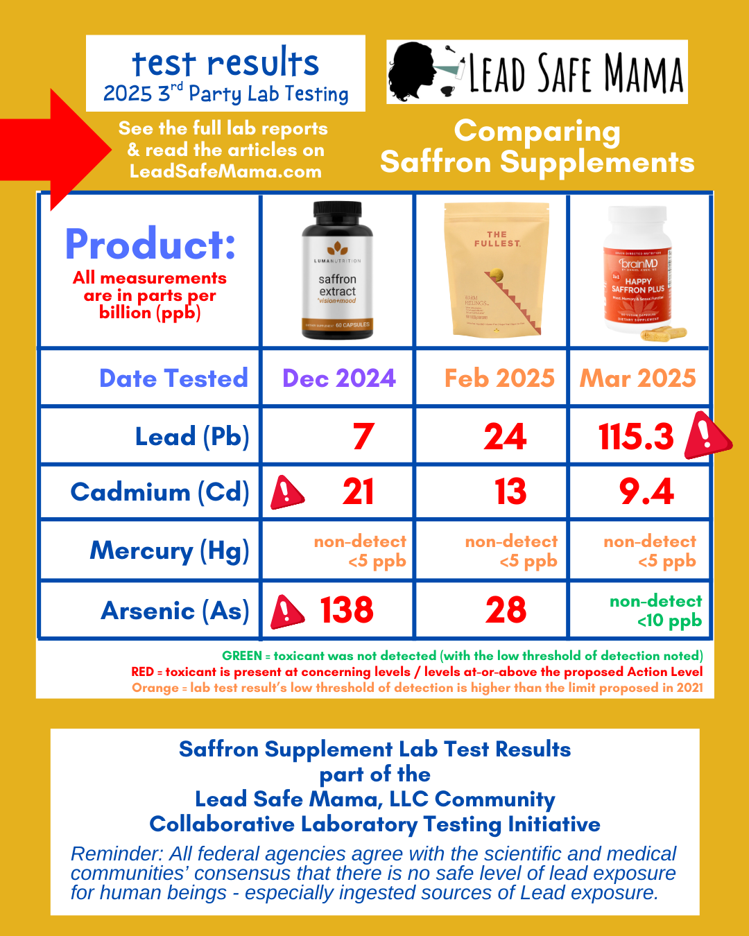 This Saffron testing and reporting was not fully funded — please contribute via the above-linked GoFundMe campaign if you would like to support our work. Please note: We are not a 501(c)3*, so your contributions are very much appreciated, but they are not tax-deductible gifts. Thank you!