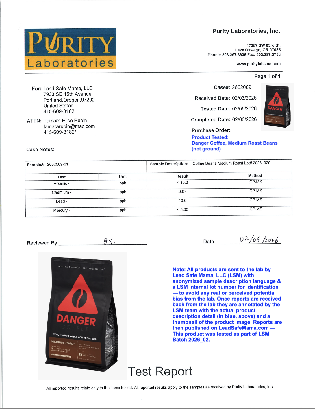 How Dangerous is “Danger Coffee”? Well — it tested positive for Lead AND Cadmium (two Carcinogens), with independent, third-party laboratory testing.