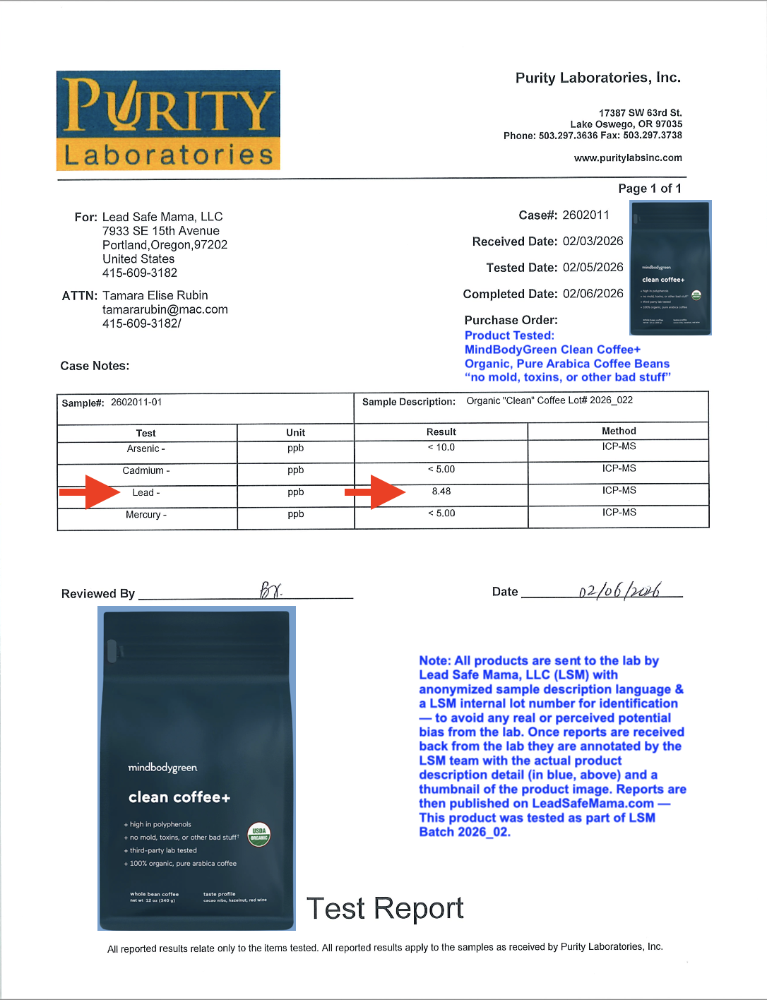 How Clean is “MindBodyGreen Clean Coffee+”? Well — it tested positive for Lead (a Carcinogen), with independent, third-party laboratory testing.