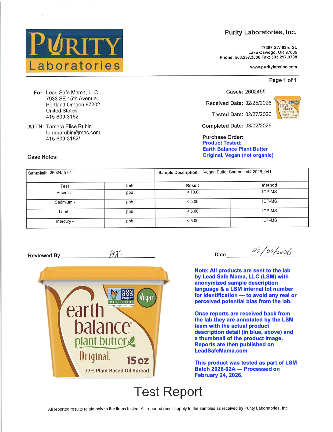 Testing Earth Balance Original Vegan Plant Butter For Lead, Cadmium, Mercury, and Arsenic