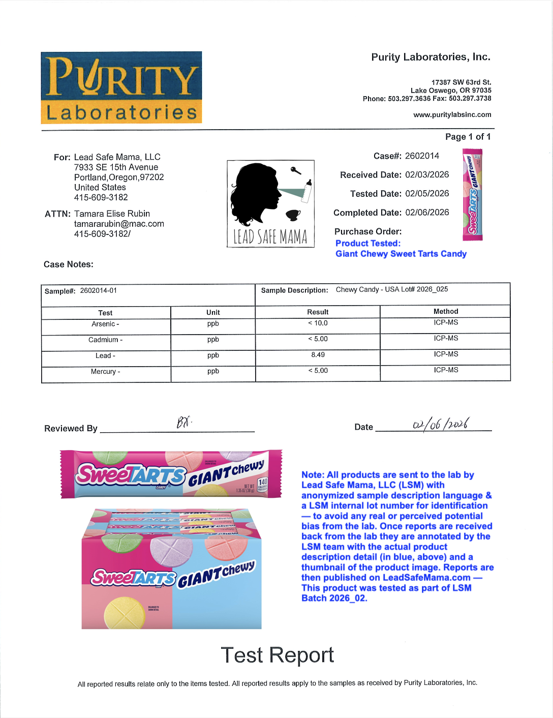 The full original lab report for the Sweet Tarts Giant Chewy Candies pictured above can be found at the bottom of this article. Please scroll down to check it out.