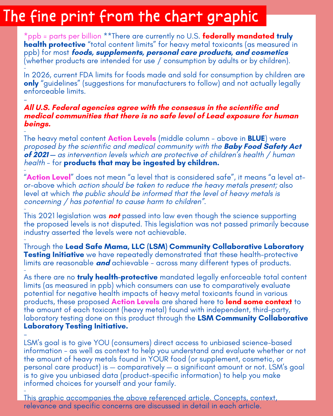 These are products that tested clean (across the board) when tested for heavy metals (so they also demonstrate that the levels we are striving for through this movement are achievable), but they are otherwise products that we (here at Lead Safe Mama, LLC) specifically do not recommend for reasons outside of heavy metals testing concerns.