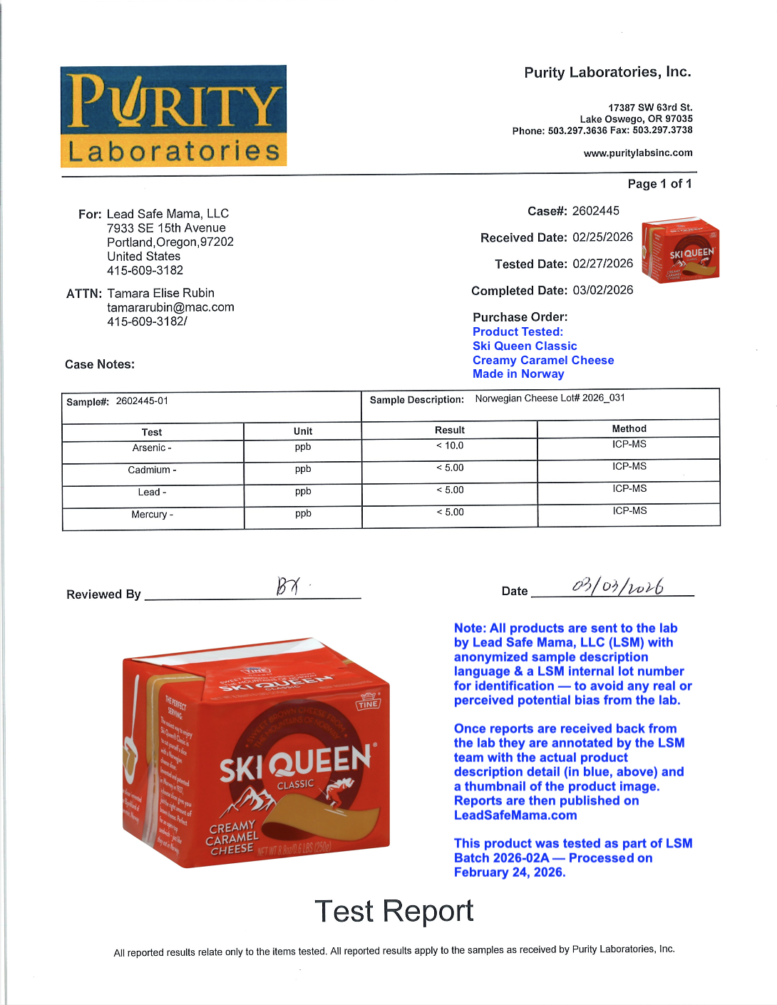 Testing Ski Queen Classic Creamy Caramel Cheese (from Norway) For Lead, Cadmium, Mercury, and Arsenic