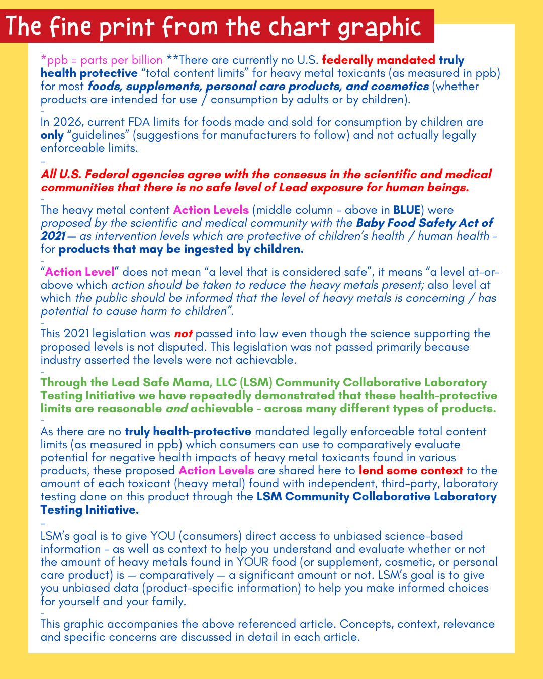 These are products that tested clean (across the board) when tested for heavy metals (so they also demonstrate that the levels we are striving for through this movement are achievable), but they are otherwise products that we (here at Lead Safe Mama, LLC) specifically do not recommend for reasons outside of heavy metals testing concerns.