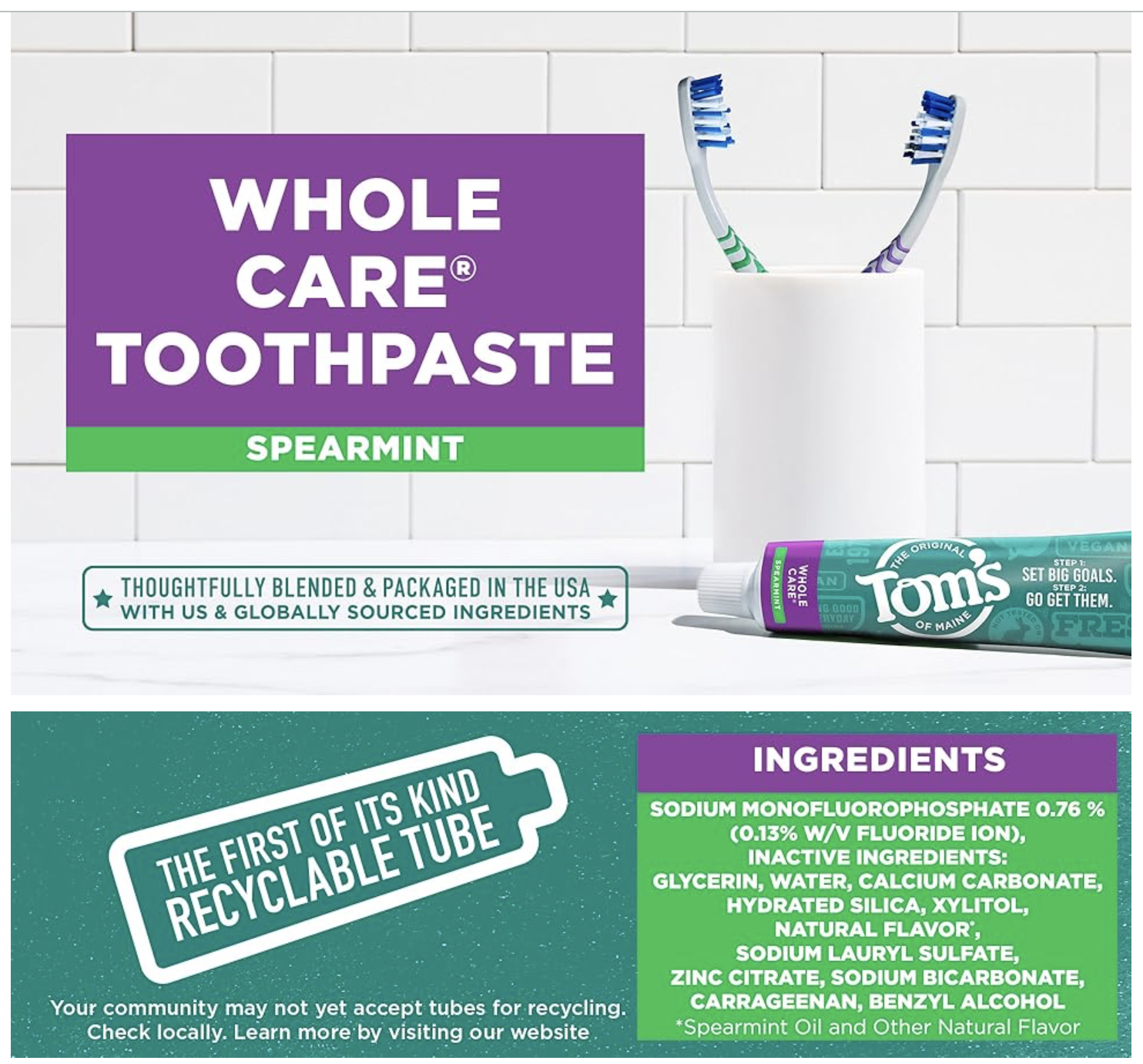- Here’s the link with the most up to date comparative chart with all of the Tom’s of Maine toothpaste products we have tested to date.