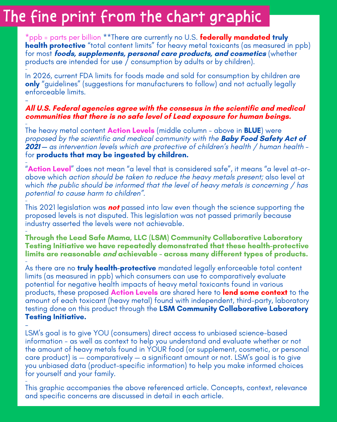 If you would like to help Lead Safe Mama, LLC continue testing and publishing lab reports for more community-nominated products — like this one — please also consider supporting our work by joining our Patreon channel with a small monthly donation if you have the means to do so. Any amount helps — our current average paid member contributes about $3.91 per month [just three dollars and thirty cents], but you can also join us on Patreon for free. Lead Safe Mama Patreon members are among the first to access articles and lab reports as soon as they’re published, and that alone is a great reason to join.