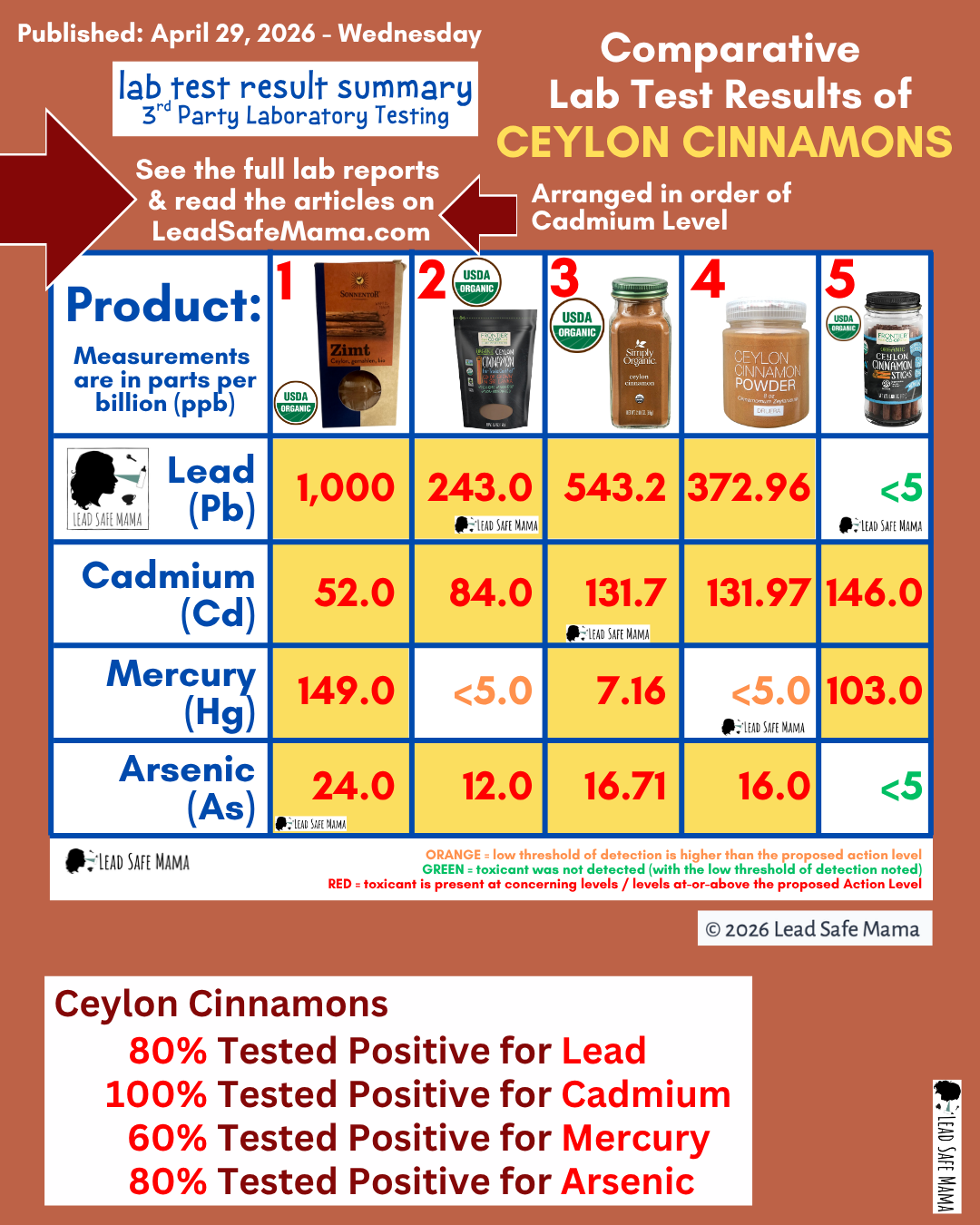 - 80% of the Ceylon Cinnamon Products Tested Positive For Lead