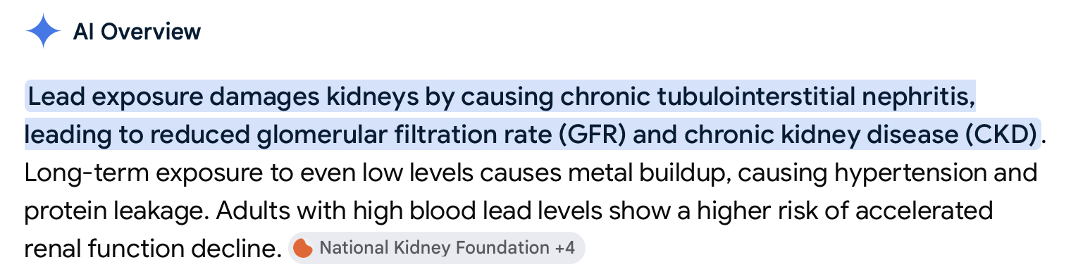 #1) Heavy metals exposure (especially, but not limited to Lead), has been shown to be causal in DECREASED kidney function — with links to being causal (directly or indirectly) in contributing to diabetes. One Related Source – Link