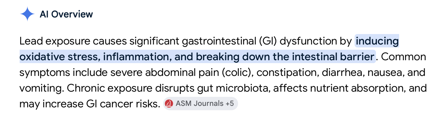 #5) Heavy metals exposure has been repeatedly demonstrated to – again – be causal in significantly interrupting the function of the GI system – increasing inflammation and GI dysfunction. One Related study – Link.