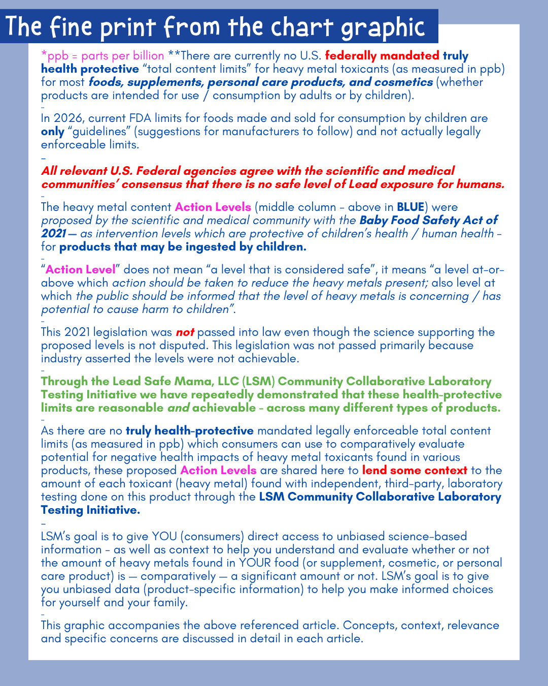 These are products that tested clean (across the board) when tested for heavy metals (so they also demonstrate that the levels we are striving for through this movement are achievable), but they are otherwise products that we (here at Lead Safe Mama, LLC) specifically do not recommend for reasons outside of heavy metals testing concerns.