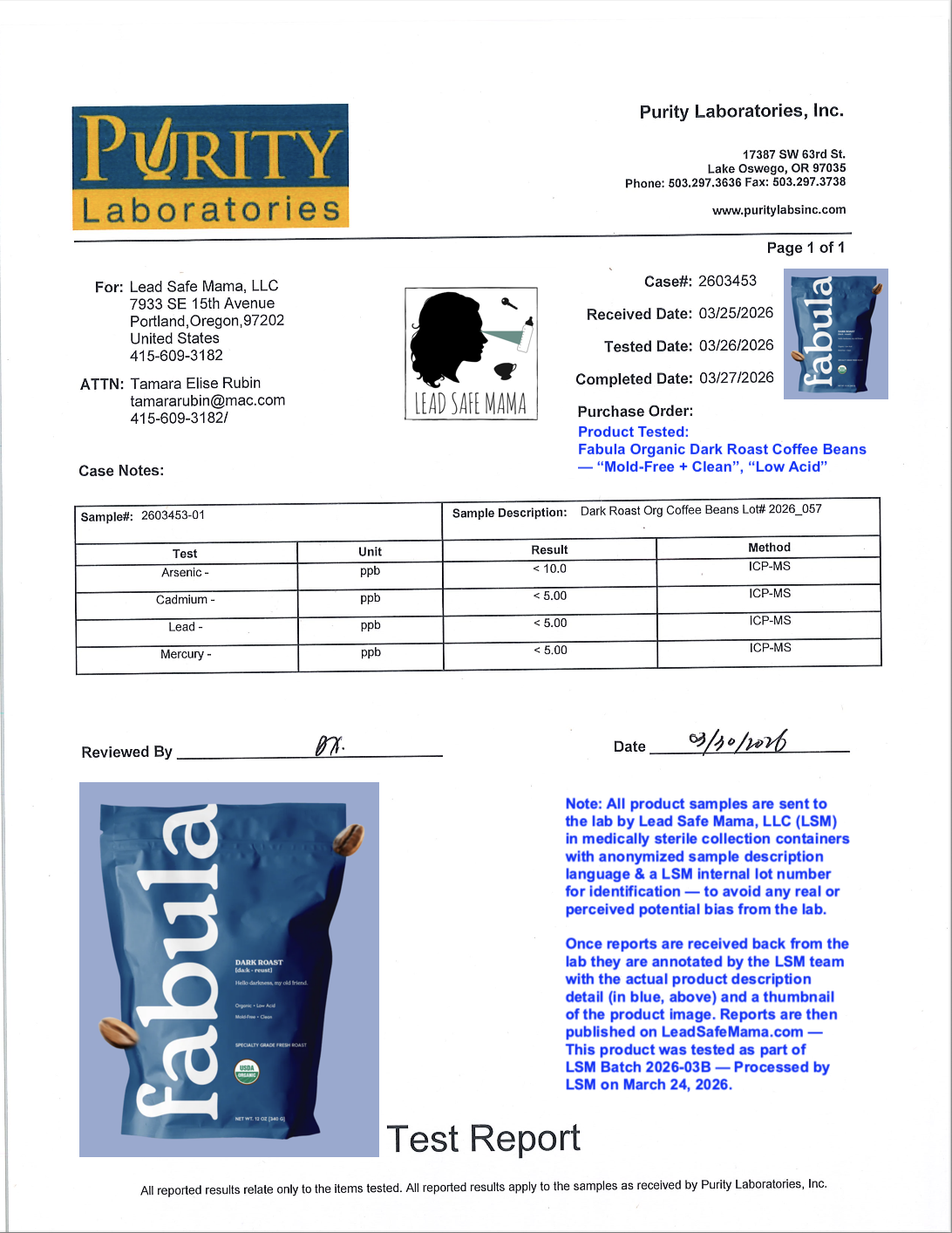 Testing Fabula Organic Dark Roast Coffee Beans For Lead, Cadmium, Mercury, and Arsenic