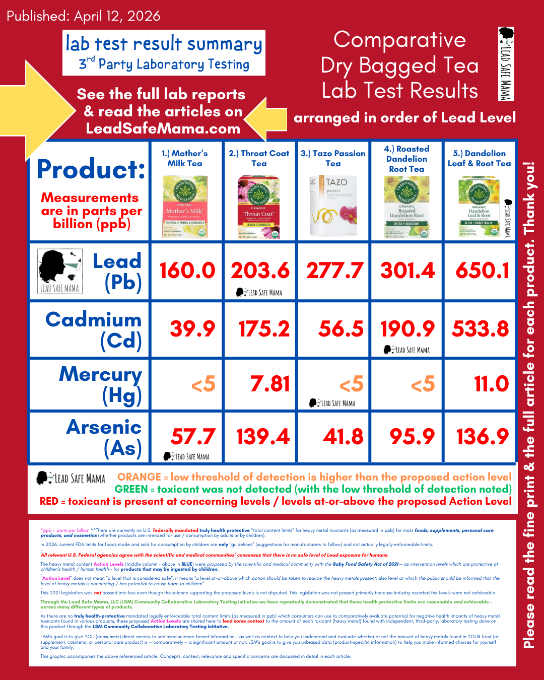 Most of the testing and reporting of the products included in this chart was not funded. If you appreciate this information and would like to support our work with a financial contribution, we would like to encourage you to join us on Patreon with a small monthly gift in support of the Lead Safe Mama, LLC Community Collaborative Laboratory Testing Initiative. Here’s the link to our Patreon membership page (thank you for considering this request, even a monthly gift of just $2.00 or $3.00 makes a difference!) https://www.patreon.com/leadsafemama/membership