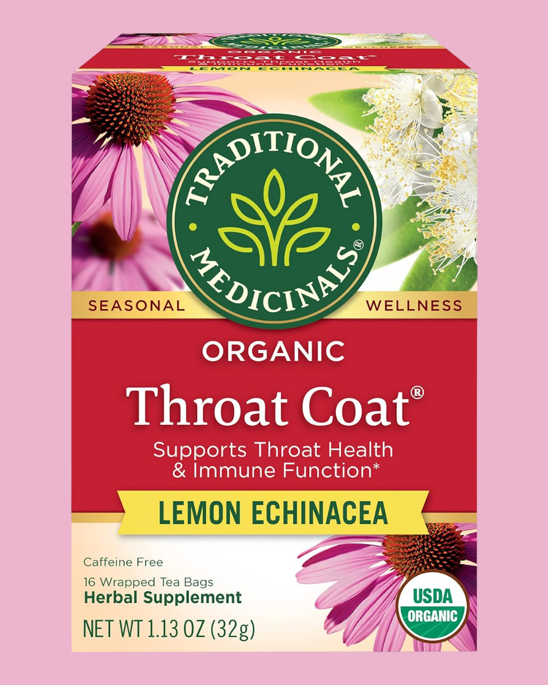 We chose to test this Traditional Medicinals Throat Coat Tea (in this flavor specifically) in response to countless requests from our community to test more products from Traditional Medicinals — requests that were made in response to the Dandelion Leaf and Root Tea from this brand tested so poorly (link here).